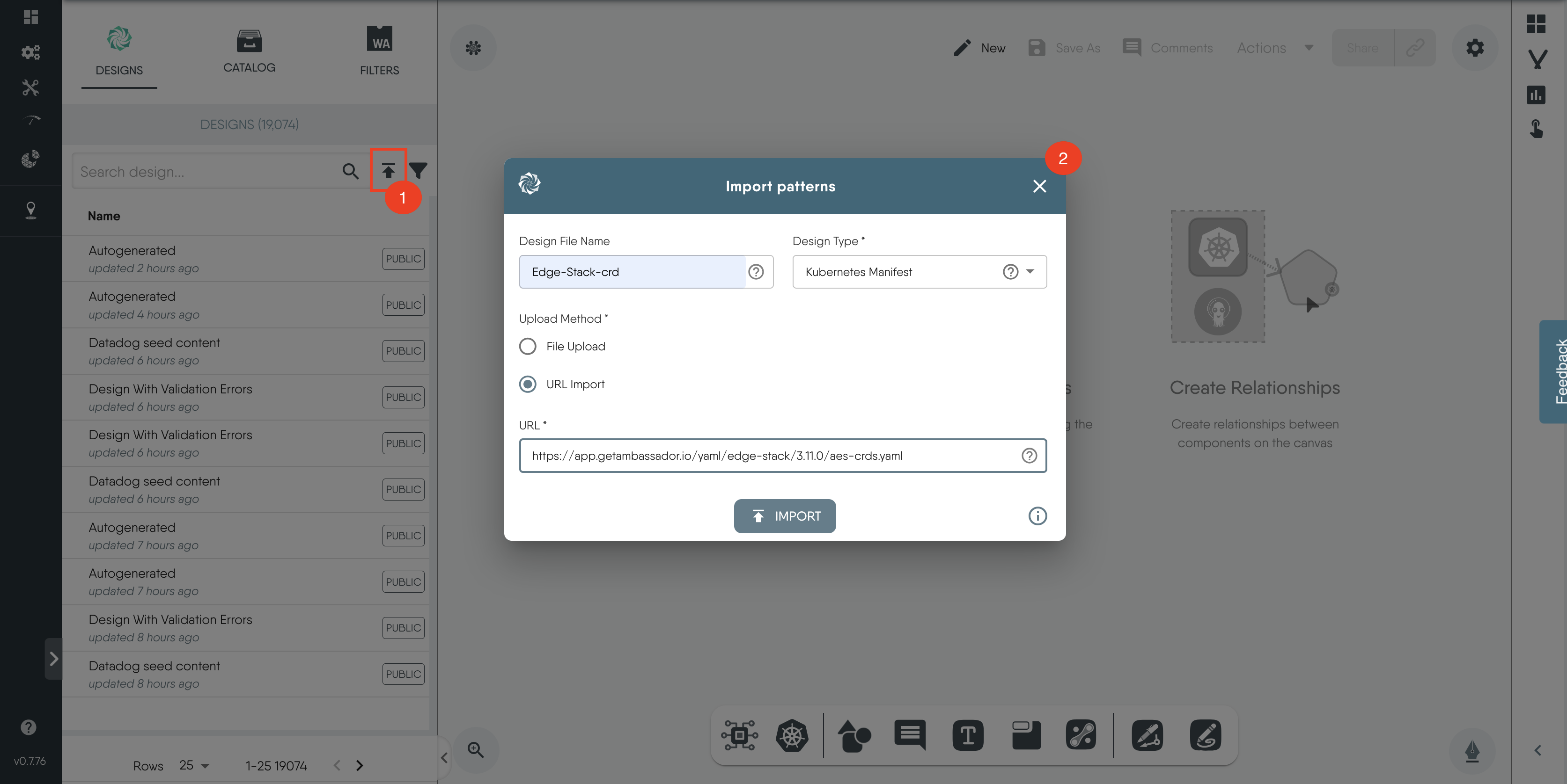 - Follow the previous Steps to Import the Edge Stack YAML into Kanvas with the name Edge-Stack.
