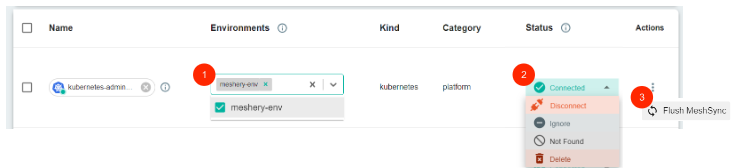 - If MeshSync is actively running in your cluster, clicking the “Flush MeshSync” button will update MeshSync with the latest data, ensuring it matches the current state of your cluster. This ensures that MeshSync’s data is refreshed and accurately reflects the current state of your cluster’s infrastructure and resources.